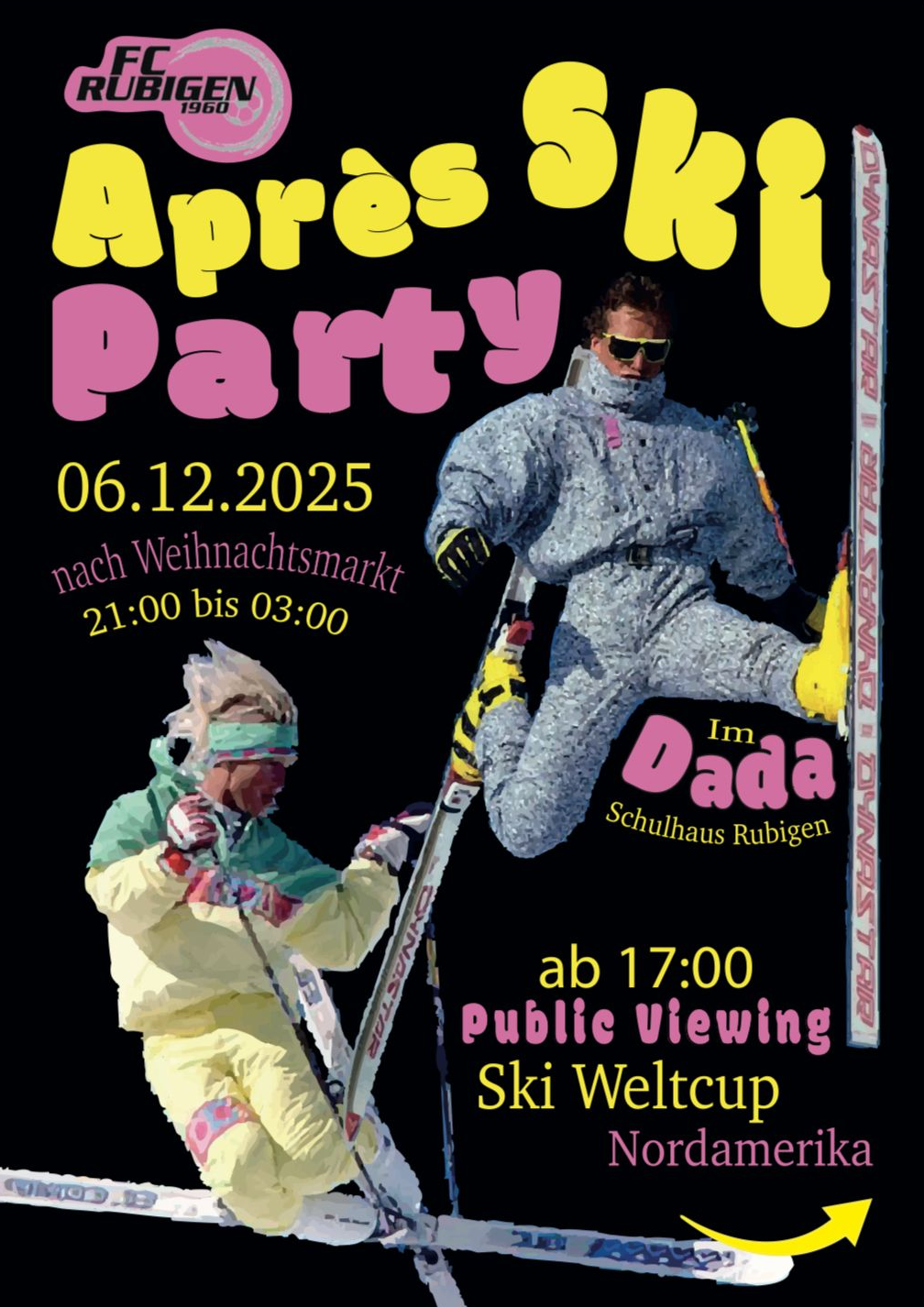 Am Chlousetag in Rubigen, da läuft was. Komm vorbei am Weihnachtsmärit, bring dein Chlouseversli mit und feiere an der Après Skiparty bis spät in die Nacht.